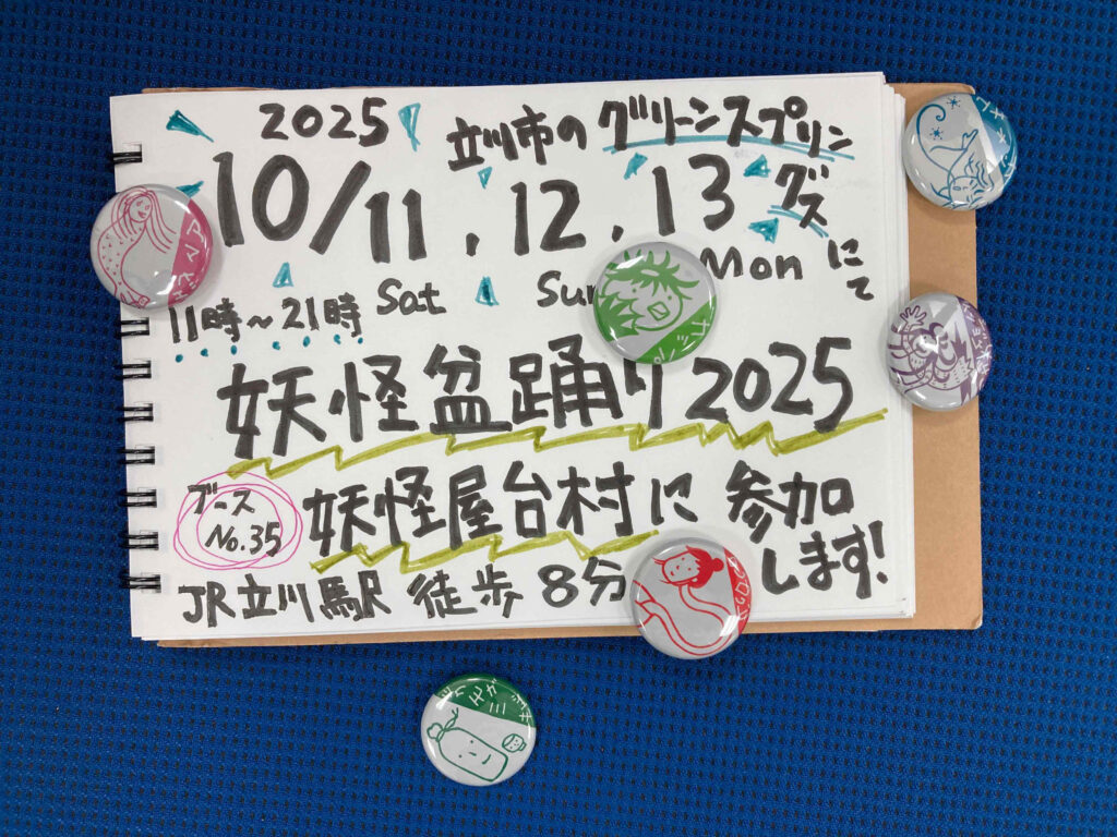 立川市のグリースプリングスで開催される妖怪盆踊り2025の妖怪屋台村に参加します。ブース番号35。会場地図