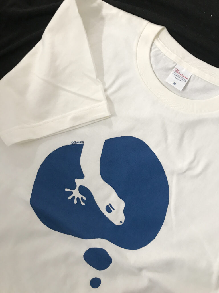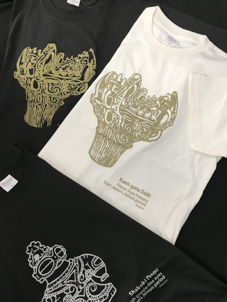 新作のニホンヤモリのTシャツ持っていきます。縄文や妖怪柄の手ぬぐいやTシャツ、トートバッグなどいろいろあります。
